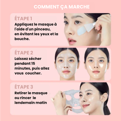 Le Masque "Peel-Off" Révolutionnaire : Profitez d'un soin intensif sans les tracas. Conçu pour être retiré sans effort en une seule pièce au matin, notre masque ne laisse aucun résidu collant sur la peau ou les oreillers. C'est l'assurance d'un triple bénéfice de nuit : une élasticité retrouvée, une hydratation profonde et un éclat radieux dès le réveil.