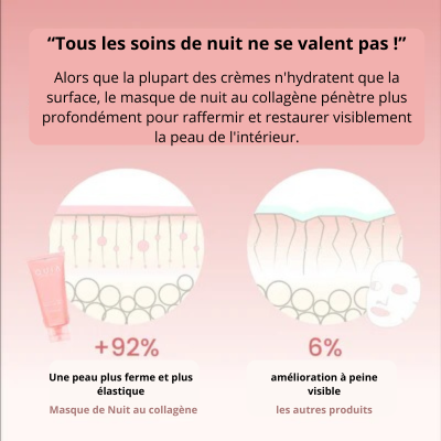 Vous avez tout essayé et la fatigue des promesses non tenues se fait sentir ? Nous comprenons ce sentiment. Pourtant, il suffit d'une nuit avec notre Masque au Collagène pour inverser la tendance. La transformation est si visible qu'elle a étonné nos clients les plus sceptiques : au lieu d'un réveil ordinaire, vous découvrez une peau intensement hydratée, visiblement repulpée et incroyablement lisse, sans aucune trace de produit sur l'oreiller. Ce soin de nuit travaille pendant que vous dormez pour stimuler le collagène et effacer les signes de fatigue. Cessez de douter et offrez-vous le réveil radieux que vous méritez.